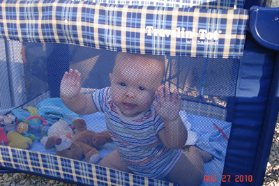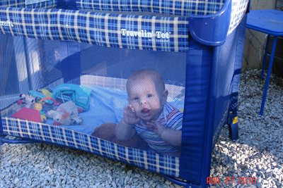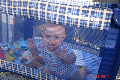 This week Garrison has started teething, and we can see teeth coming in trying to break skin on the bottom gums.