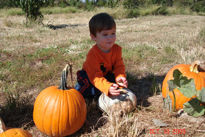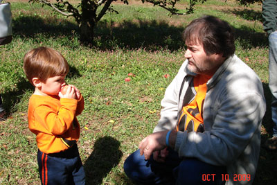 He really loved eating the apples he was picking, his favorite was the "little baby apples" that Grumpy peeled. He probably ate 4 apples while we were picking. Those people that have you-pick-your-own farms really should weigh people before and after they send you to the fields. The little stinker did not want to pose for pictures though. Anytime we tried to get him he'd look away.