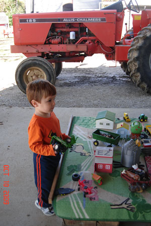 Emmett liked riding on the tractor pulled wagon out to get apples and pumpkins, in fact, we took a couple of extra tractor rides just because. He also really liked playing with the tractor table they had (think train table just the farm version).