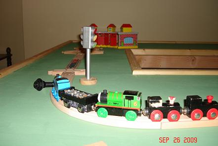 Grumpy found some sets of Thomas-like trains at Toys R US to use as rewards. Emmett seemed to have enjoyed the rewards because we no longer have problems with not going.