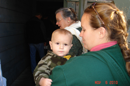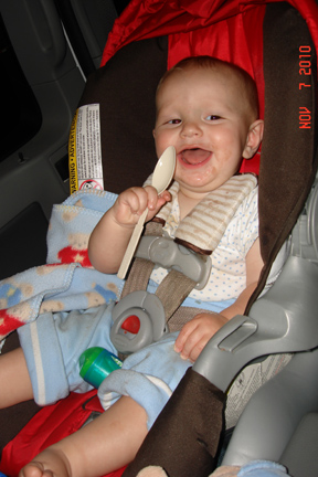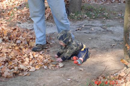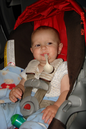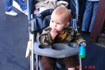 Fairly soon he should be confident enough to walk much farther distances on his own, and mom's "baby elbow" (simmilar to tennis elbow- but resulting from carrying Garrison) and dad's back should heal right up since they won't be carrying him!