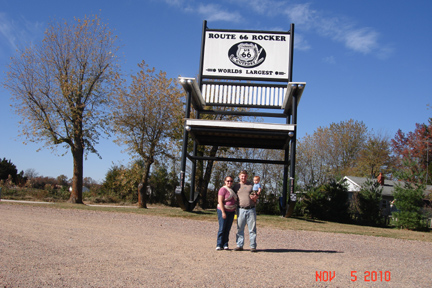 On the way down Chris and I stopped with G at the World's Largest Rocking Chair, we'd seen the signs when we went to the Lake a couple months ago, but didn't stop. When we saw them this time we did stop to see it. It's BIG!