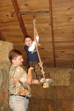 I had forgotten all about the hayloft with the rope swings until we got up there. Lots of kids like them, we had to wait quite a while to get a turn, but when he finally got his chance, Emmett thought it was pretty cool and didn't want to leave!