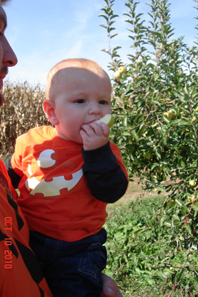This was a great time to make our visit, because Garrison had two teeth come through in the last week, and one of his favorite foods to chew on is apple slices!