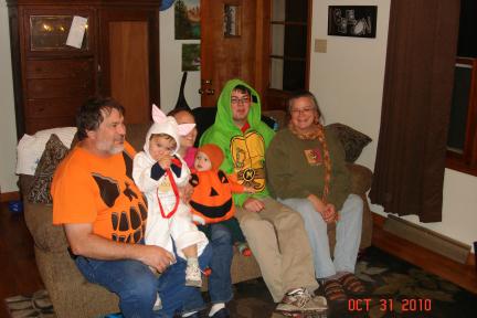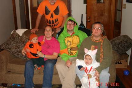Message: This is Garrison's first Halloween, and following tradition, he wore the same costume that Emmett wore his first Halloween, which was also dad's Halloween suit. Surprisingly, the suit itself has held up quite well over the years.