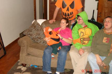 As soon as dinner was over, Emmett jumped up from the table and declared: "Alright I'm done eating, let's get our costume on and go trick or treating!"